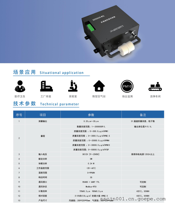 SDS029采用工业级激光器与感光部件,采用诺方*新一代光散射颗粒物技术,精心调焦的光学和气路结构,全新一代高频弱信号处理电路以及高精度粒子识别算法,相比上一代产品在粒径识别范围和准确度等方面大大提高,可以更好的适应监测对象粒径组分变化的情况,将多通道粒谱监测技术推向适合大量部署的应用领域。